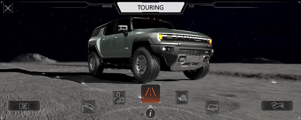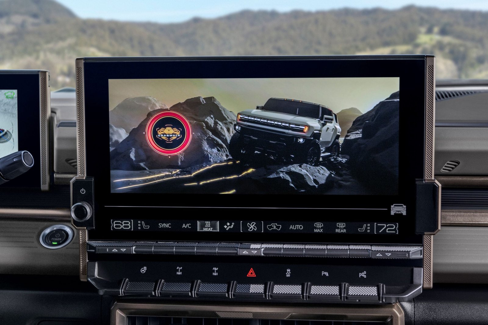 10. عناصر عرض خاصّة بالقيادة الوعرة (Off-Road Widgets) توفر حزمة من المعلومات المرتبِطة بقدرات ’هامر EV‘ القابلة للاختيار، والقراءات المتعلِّقة بالأداء في ظروف القيادة الوعرة – وهذا يشمل كل شيء بدءً من ارتفاع الركوب وتفعيل عمل القفل الإلكتروني (eLocker)، وصولاً لتوجيهات البوصلة، ووضعية الغوص/التمايل وغير هذا الكثير.