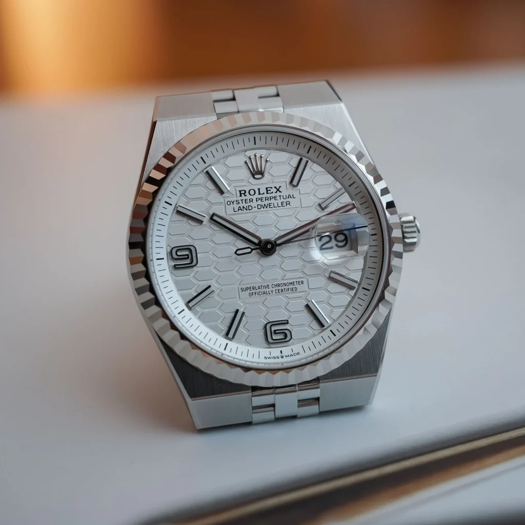 من أبرز المفاجآت في Watches and Wonders 2025 كانت ساعة Rolex Land-Dweller التي قدمتها رولكس كإضافة جديدة إلى مجموعتها. هذه الساعة لم تبرز فقط بسبب تصميمها المختلف، بل أيضًا بسبب الحركة الجديدة Calibre 7135 التي تعتمد على تقنية Dynapulse escapement.