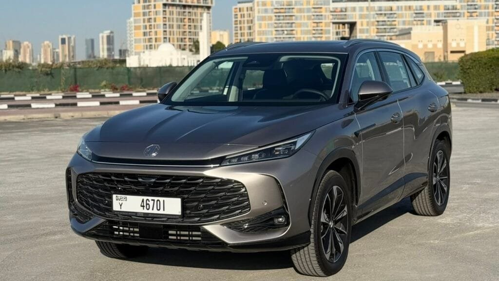 تتميز “أم جي اتش إس 2025” بتصميم خارجي ديناميكي يعكس القوة والأناقة في آن واحد. تتمتع الواجهة الأمامية بشبك مميز يحمل شعار العلامة التجارية “MG”، إلى جانب مصابيح LED متطورة تضفي لمسة من الحداثة. كما تم تزويد السيارة بجنوط رياضية كبيرة بقياس 19 بوصة، مما يعزز من مظهرها الرياضي ويزيد من ثباتها على الطرق. خطوط السيارة الانسيابية تساهم في تحسين الديناميكية الهوائية، مما يزيد من كفاءتها في استهلاك الوقود ويسهم في تقديم تجربة قيادة سلسة.
