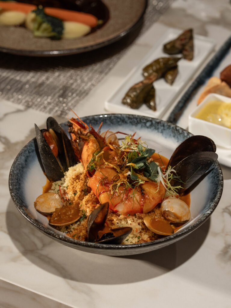 تنطلق التجربة بحلاوة التمر وأصالة القهوة العربية الطازجة، ثم تتوالى الأطباق المختارة بعناية، مثل كتف لحم الضأن الطري وكسكس السمك الغني بالنكهات. وتُستكمل الرحلة بتشكيلة فاخرة من الحلويات الشهية، والفواكه الطازجة، والحلويات العربية التقليدية، في تجربة متكاملة تعكس روح الشهر الفضيل. وتبلغ قيمة الإفطار 550 درهماً للشخص الواحد، فيما تنساب حركة المدينة بهدوء في الأسفل، لتكتمل الأجواء بروح رمضان المتجلية في كل تفصيل.