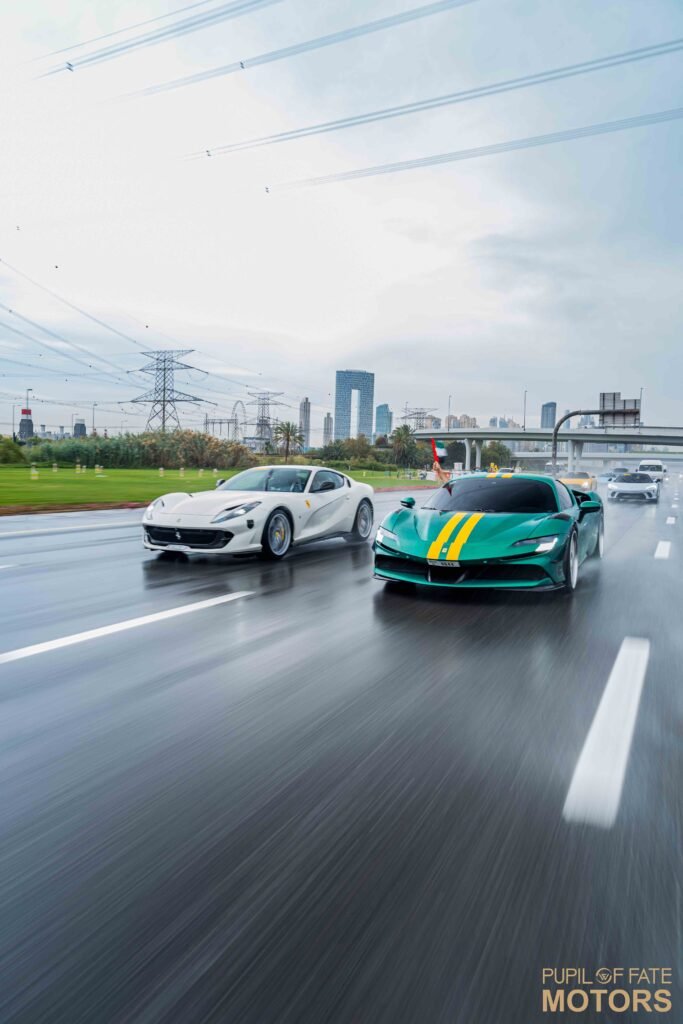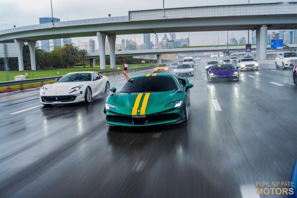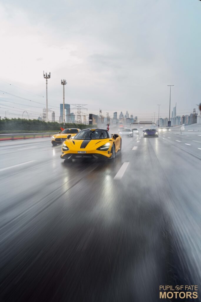 مع تحرك القافلة من دبي، اشتد المطر، وخلق مشهدًا أقرب إلى السينما. انعكاسات الطريق المبلل، صوت المحركات في الهواء الرطب، ومشهد أكثر من 100 سيارة تتحرك بتناغم، جعل رحلة سوبركارز مجلس تجربة لا يمكن تكرارها.