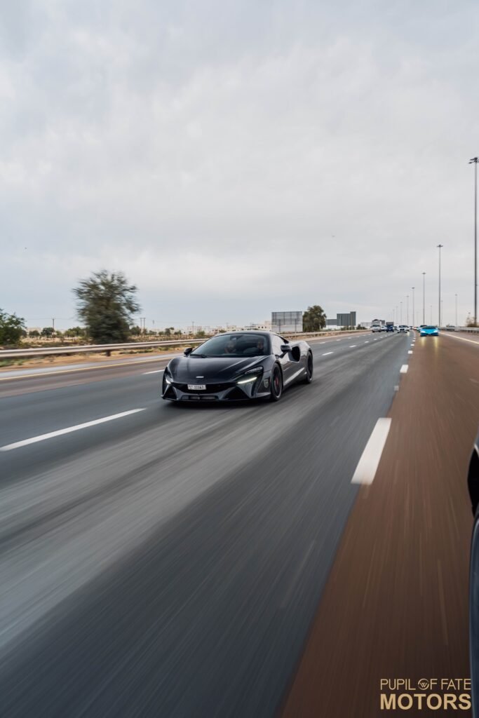 الطريق نحو Yas Marina Circuit بدا وكأنه عرض متحرك. السائقون الآخرون خففوا السرعة، الهواتف خرجت للتصوير، وللحظات أصبح الطريق مسرحًا لسوبركارز مجلس. ومع ذلك، حافظت القافلة على هدوئها، مؤكدة أن الهدف هو الحضور وليس الأداء.