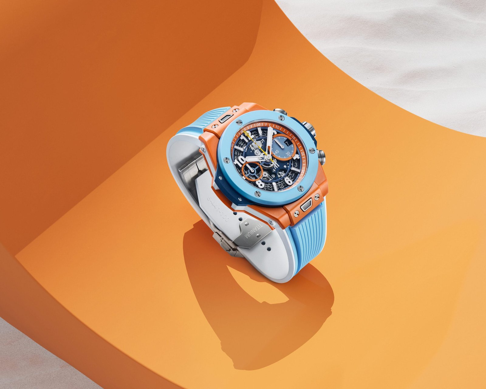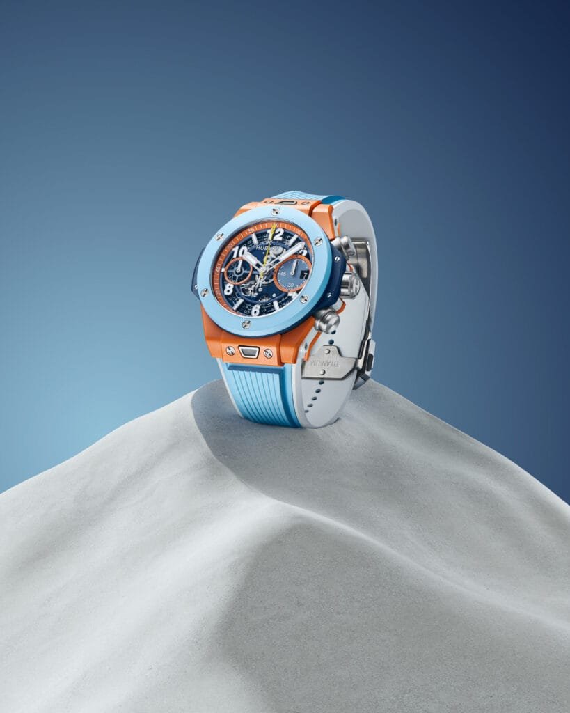 تتألق ساعة Big Bang Unico Summer 2025 بتدرجات اللونين البرتقالي الساطع والأزرق البحري النقي، ما يعكس صفاء البحر المتوسط وسحر أيام الصيف التي لا تنتهي، حيث الرمال الذهبية تحت الأقدام وأمواج البحر تتمايل برقة على الشاطئ.