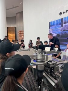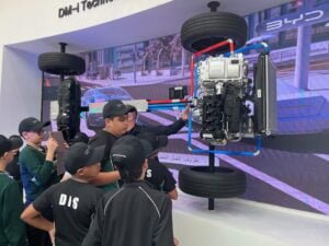 وأثناء الزيارة، تعرف الطلبة عن كثب على طرازات السيارات الكهربائية من “بي. واي. دي”، بما في ذلك “بي. واي. دي. هان” (BYD HAN) و”بي. واي. دي. آتو 3″ (BYD ATTO 3) و”بي. واي. دي. سيل” (BYD SEAL)، التي تم تصميمها