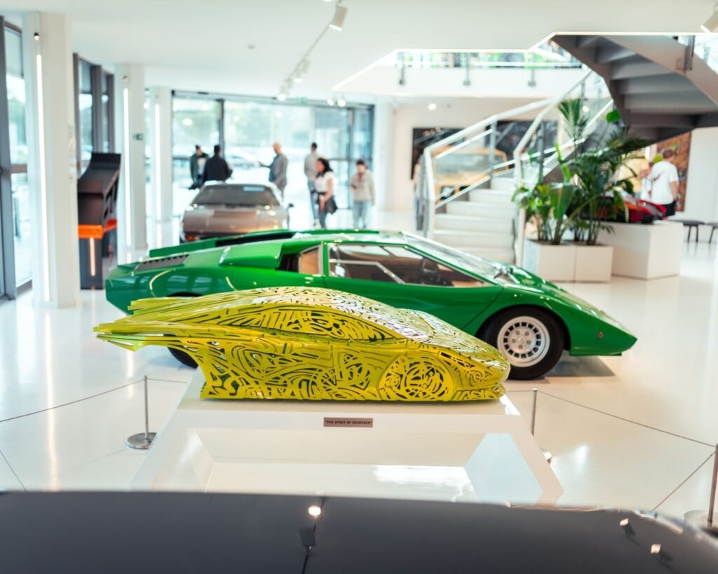 وتتميّز المنحوتة الفريدة بأشكال خطيّة متداخلة ومستوحاة من الخط العربي القديم وزخارف الأرابيسك لفن العمارة الإسلامية. كما تتناغم تلك العناصر مع نموذج سيارة لامبورغيني كونتاش، مما يخلق ظهوراً آسراً للسيارة وكأنها تطفو في بانسيابية في الهواء ويعزّز الهالة الروحية والغموض الذي يحيط بالعمل الفنّي.ويقف عمل”روح كونتاش” الفنّي اليوم كأحد التصاميم المرموقة المعروضة في معرض “حلّق بأحلامك”، ليشكّل إضافة مميزّة لمقّر شركة لامبورغيني في بلدة “سانت اجاتا بولونيز” في شمال إيطاليا بجانب سيارات لامبورغيني الكلاسيكية والفريدة في المتحف. وتحتفل الإبداعات الفنيّة، التي تم تصميمها بالشراكة مع صالات عرض لامبورغيني في جميع أنحاء العالم، بمرور 60 عامًا على ابتكار العلامة التجارية وتصميمها ودمجها في الثقافات المحلية.