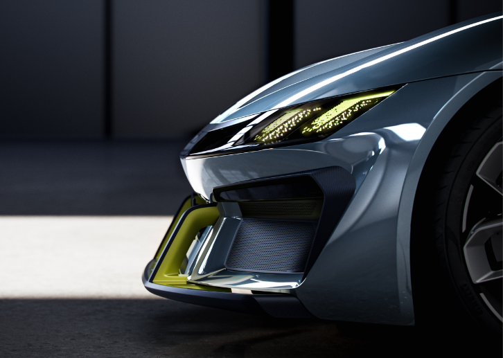 يُقدّم لينك آند كو GT كونسبت تصميماً خارجياً يستوحي الضوء عند ذروته مصدراً لإلهامه البصري. وبالتالي، تمتد انعكاسات شبيهة بالهالة الضوئية على جانبَي السيارة لتمنحها عمقاً بصرياً نادراً. فضلاً عن ذلك، تُبهج الخطوط الجريئة والنسب الواثقة كل من يُمعن النظر في تفاصيل السيارة. كذلك يتغير المشهد البصري مع حركة المشاهد حول السيارة إذ تظهر زوايا غير متوقعة وانتقالات جريئة تُضيف حيويةً فريدة للأسطح. أما لون Apex Blue المعدني السائل فيُعزز عمق الهيكل المنحوت وانعكاسيّته بشكل استثنائي. وبناءً على ذلك، يتميز الجزء الأمامي بشريط التقنية المميز للينك آند كو المندمج بسلاسة مع مصابيح النهار الرأسية. علاوةً على ذلك، يسري على الجانبَين ما يُعرف بـ”التوتيم التقني” المحفور بالليزر بانسيابية تُضيف لمسة تقنية دقيقة. وبالتالي، يُعدّ المؤخرة من أكثر التفاصيل إثارةً بحافتها الواضحة والديفيوزر البارز المُحسِّن لتدفق الهواء.