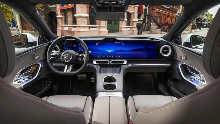 تتباين فلسفة التقنيات في مرسيدس C-Class EV مقابل BMW i3 بشكل لافت وواضح. تختار مرسيدس الإبهار البصري المباشر عبر شاشة بانورامية بعرض 39.1 إنش تمتد من عمود لعمود عبر لوحة القيادة. وهذه الشاشة الأكبر من نوعها في أي سيارة إنتاجية في التاريخ. كذلك يتوفر نظام ثلاث شاشات منفصلة كخيار قياسي أقل إبهاراً.