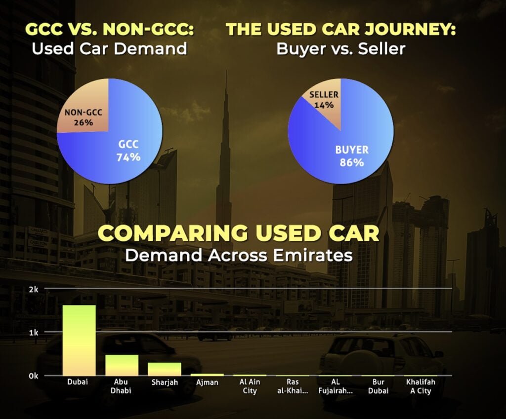 • بحسب Vehicle Report، تشير رحلات المستخدمين إلى أنّ 74% من العملاء يبحثون عن مركبات بمواصفات خليجية في سوق السيارات المستعملة، وأنّ 86% من المستخدمين هم من مشتري السيارات، وأنّ الغالبية تبحث عن مركبات تتراوح أسعارها بين 20,000 و30,000 درهم إماراتي.