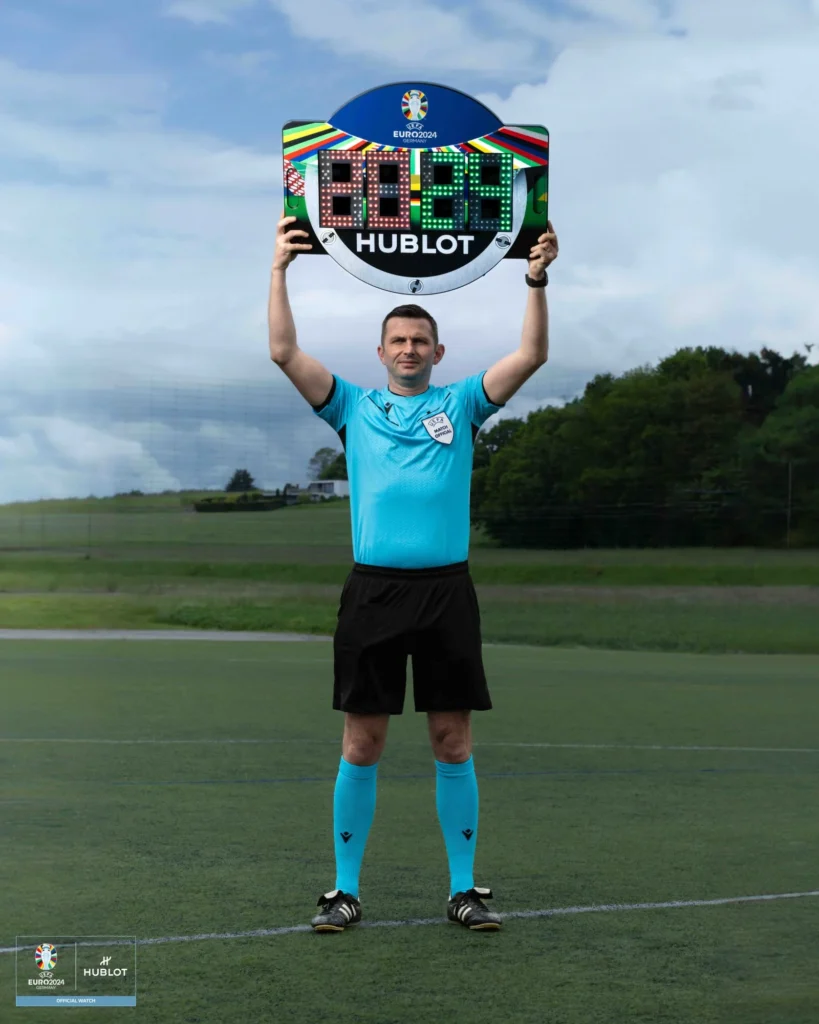 استعدّوا لشهرٍ لا يُنسى من كرة القدم المتواصلة، خارج الملاعب وداخلها، مع هوبلو، فشركة صناعة الساعات السويسرية الفاخرة ستُشارك في كأس أمم أوروبا للمرة الخامسة على التوالي، منذ عام ٢٠٠٨. في النسخة السابعة عشرة من كأس أمم أوروبا لعام ٢٠٢٤، سيبرز حضور العلامة على أرض الملعب من خلال لوحة الحكم الرابع الشهيرة التي تحاكي ساعات Big Bang، وساعة Big Bang e المتّصلة التي سيرتديها حكّام البطولة لضبط الوقت في كلّ ثانية من اللحظات الحماسيّة خلال المباريات.