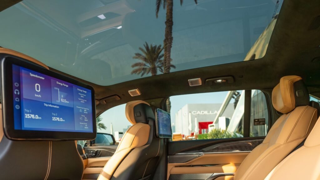 The real surprise begins the moment you sit inside the Cadillac Escalade IQ 2026. First, a sweeping 55-inch panoramic display stretches across the full width of the dashboard. Second, the system runs on Google Built-In technology for a smooth and intelligent infotainment experience. Third, the AKG sound system with 38 speakers delivers a professional audio quality that is truly rare in any vehicle. Furthermore, the second-row Executive Seating offers a legroom of up to 1,051mm for maximum comfort on long journeys. Additionally, a panoramic sunroof adds a feeling of openness and space to the already generous cabin. Consequently, the interior feels closer to a luxury living room on wheels than a traditional SUV.