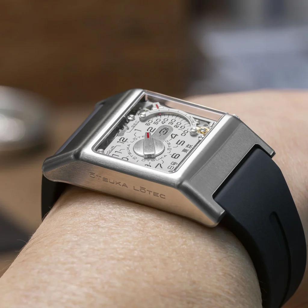 The brand focuses on minimalist industrial design rather than traditional luxury styling. Otsuka Lotec engineers integrate retrograde displays in creative and unconventional ways.